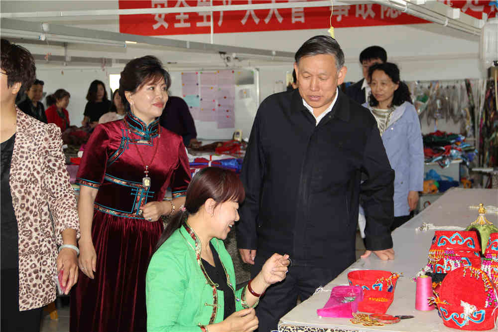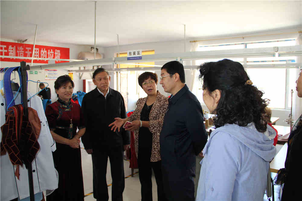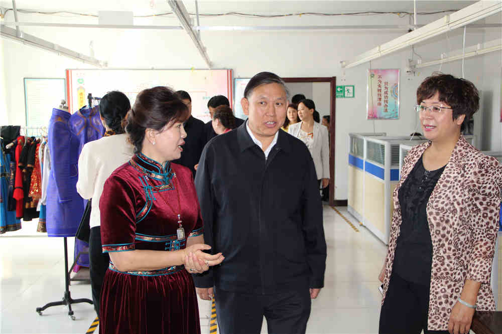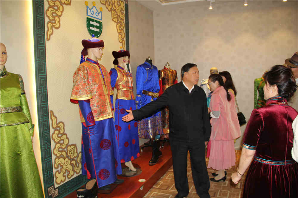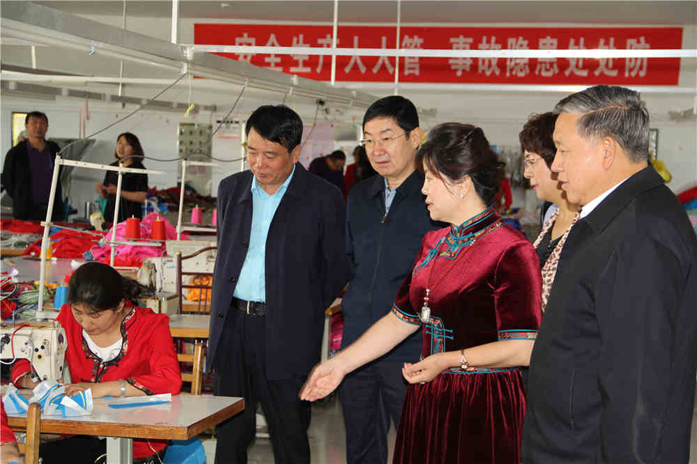 2018年5月29日上午,由內蒙古自治區(qū)政協(xié)常委、提案委員會主任 云肖峰、自治區(qū)政協(xié)常委、人口資源環(huán)境委員會主任 云治厚、自治區(qū)政協(xié)常委、內蒙古自治區(qū)婦聯(lián)副主席 梁淑琴、呼和浩特市副市長 王繼平、呼和浩特市政協(xié)副主席 回力、呼和浩特市旅發(fā)委副主任 張銘花等領導組成的調研組一行,來到內蒙古德利源民族服飾有限公司進行實地調研考察