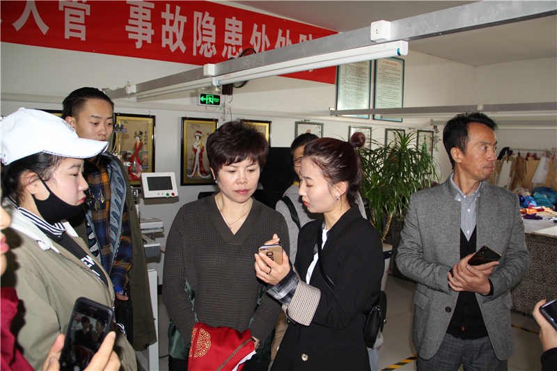 康總經(jīng)理帶領(lǐng)師生們共同參觀了生產(chǎn)車間,介紹正在生產(chǎn)的服飾設(shè)計(jì)和工藝